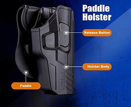 · Holster has a quick-release/quick-locking button that allows for qucik draw and automatic locking when your gun is reholstered