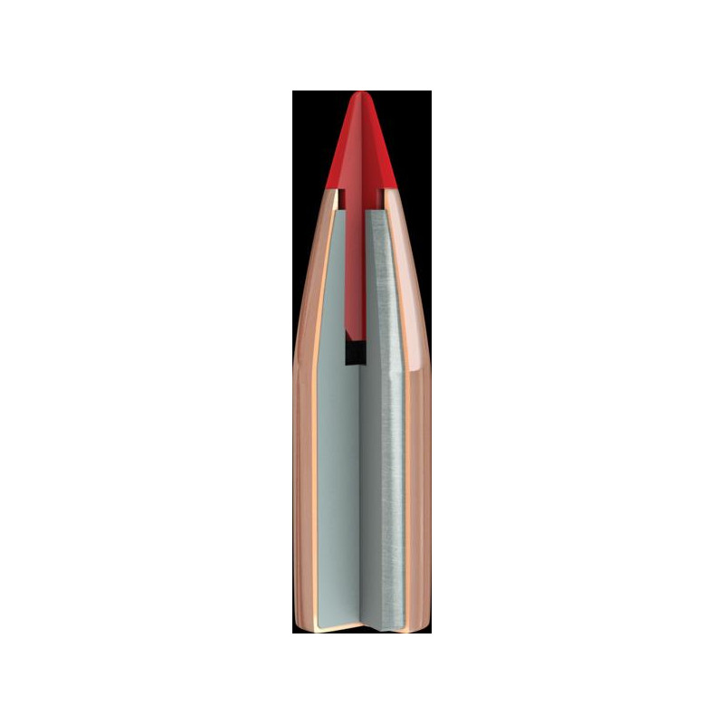 Hornady® combines the sharp, pointed polymer tip with the most aerodynamic profile for a high ballistic coefficient. The V-MAX® profile also provides the maximum bearing surface for added in-flight stability.
