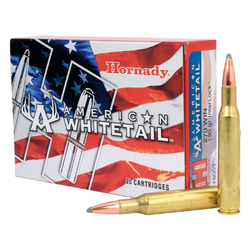 Hornady American Whitetail .270 Win 130 gr InterLock is a no-nonsense, field-proven deer hunting round. It delivers everything a hunter needs — flat trajectory, accurate shot placement, and powerful terminal performance that gets the job done, season after season.